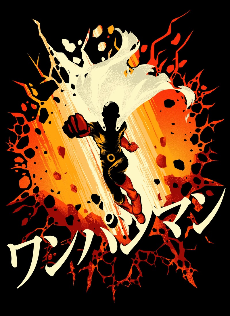 Saitama’s devastating punch meets every villain with effortless, overwhelming bald-headed power.