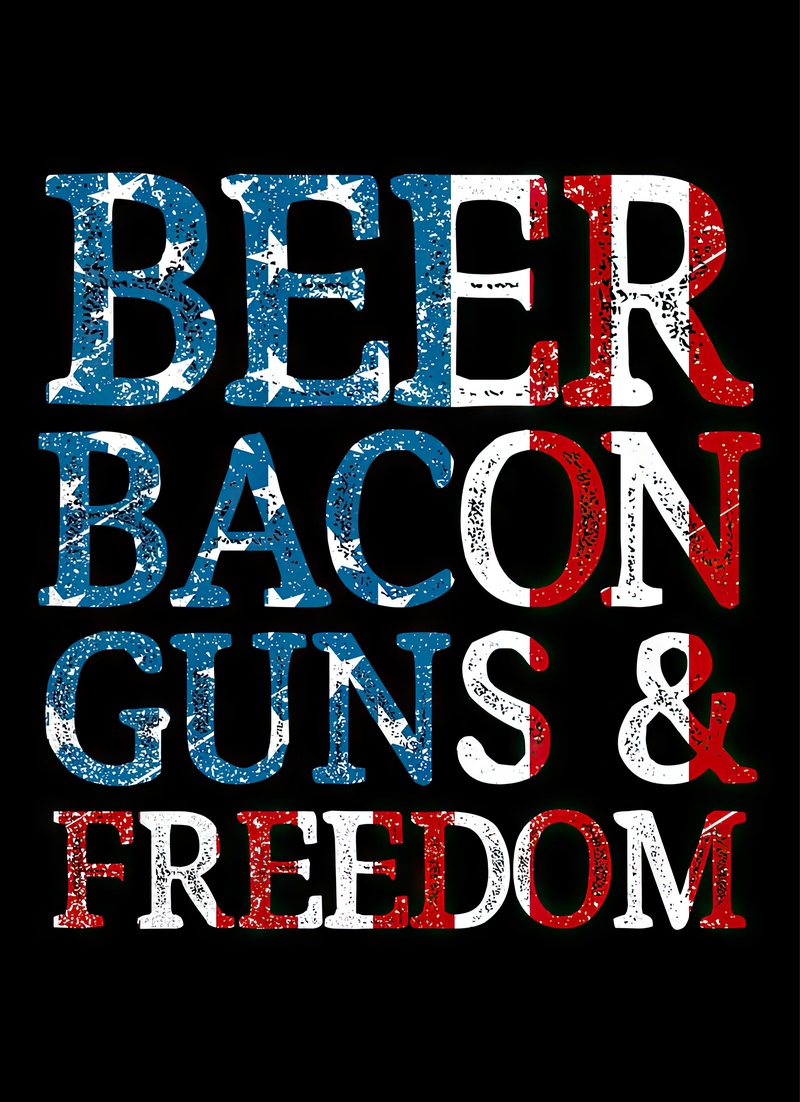 Beer, bacon, and freedom — celebrating the essentials of life with bold humor.