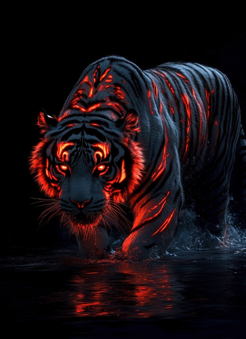 The majestic Bengal tiger prowls with raw power and striking orange beauty.