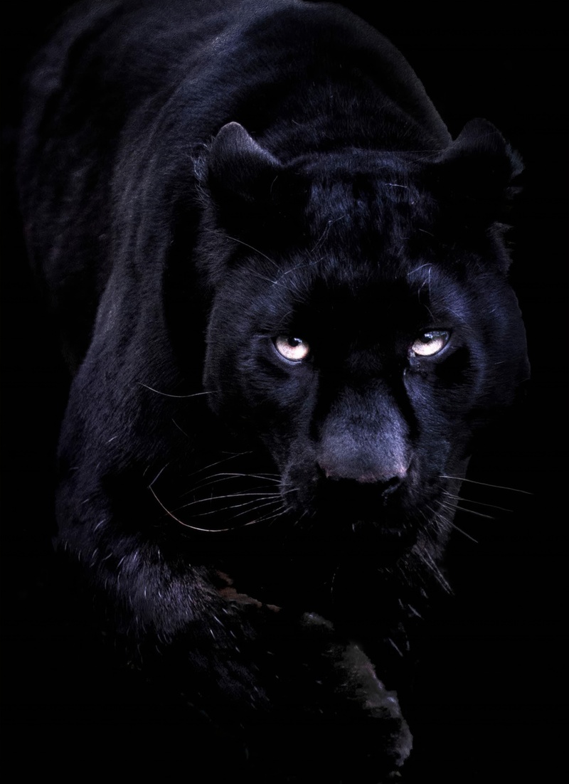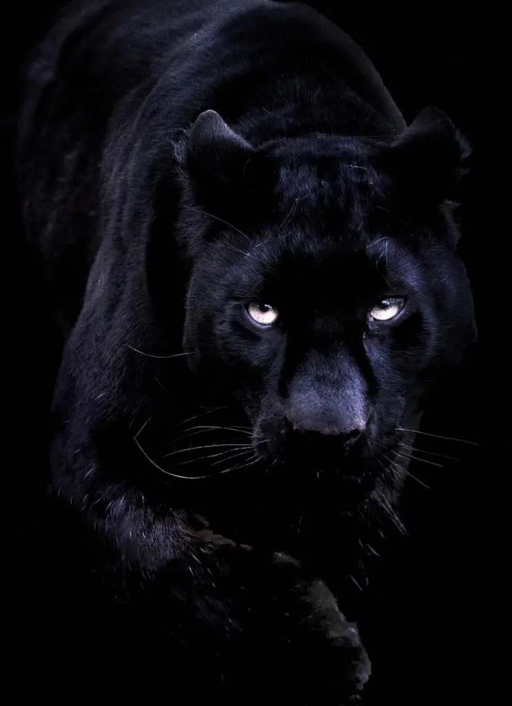 A sleek black panther stalks through shadows with silent, deadly elegance.