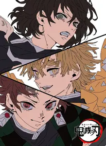 The Demon Slayer trio charges forward — courage, fire, and unbreakable bonds.