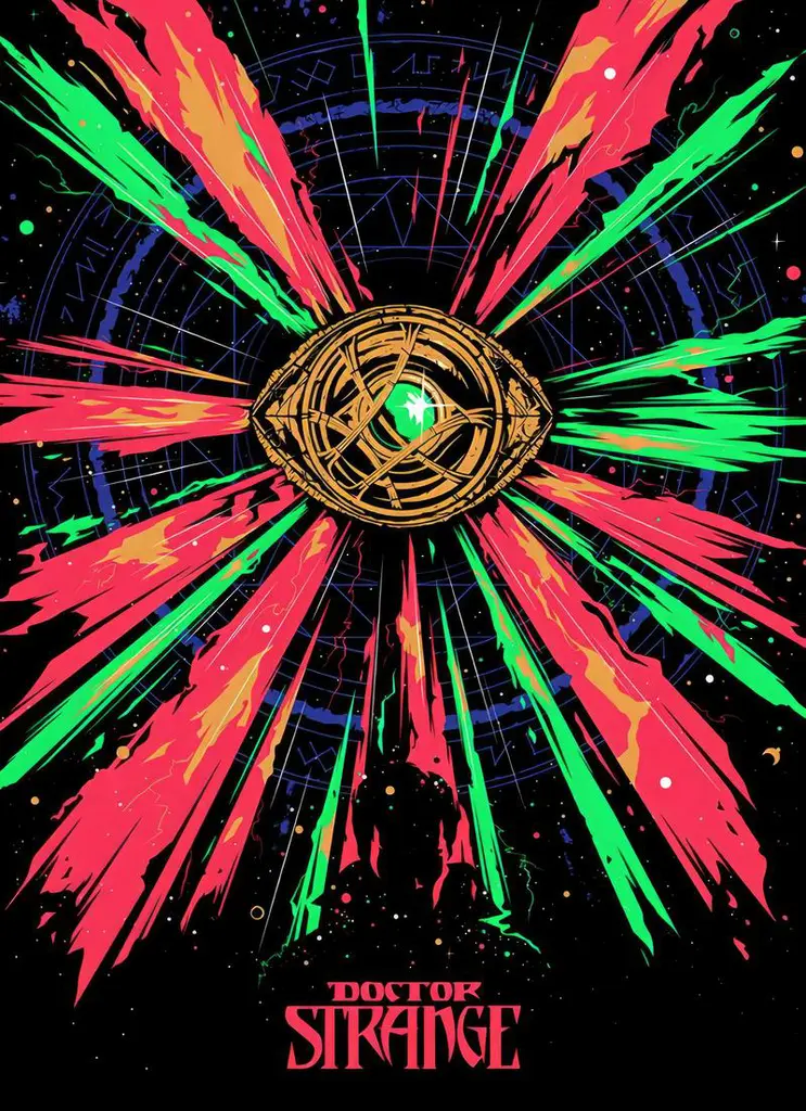The Eye of Agamotto glows — Doctor Strange bends time and mystic reality.