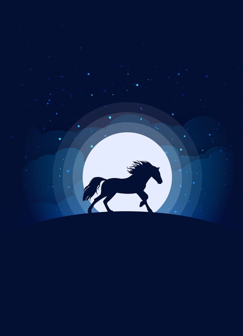 A horse gallops under moonlight — wild freedom beneath a glowing night sky.