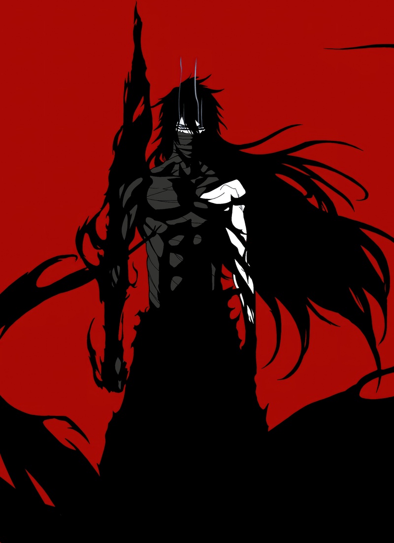Ichigo defends Karakura Town with Zangetsu, slashing through hollows and soul reapers.