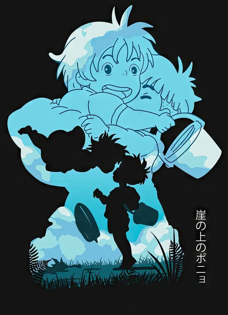 Ponyo and Sosuke share a magical bond between the sea and shore.