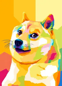 Shiba Inu bursts with vivid pop art colors and playful meme energy.