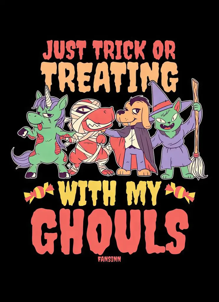 Trick or treat squad assembles — spooky costumes, candy bags, and Halloween fun.
